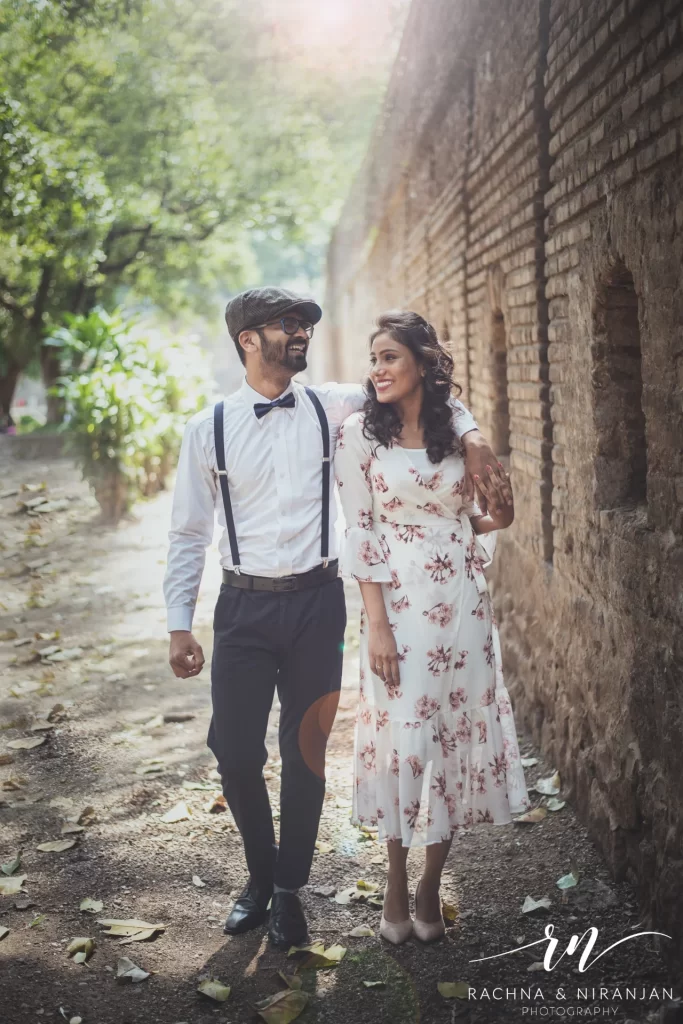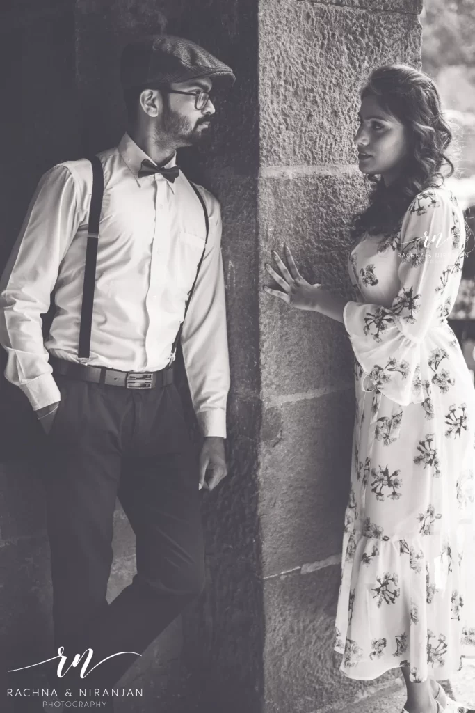 Pune, with its rich heritage and numerous nearby forts, offers the perfect setting for a vintage-themed pre-wedding shoot. Think stone walls, arched doorways, and old-world charm. With the right styling and the classic black-and-white edits, the entire shoot can feel like a love story from another era.